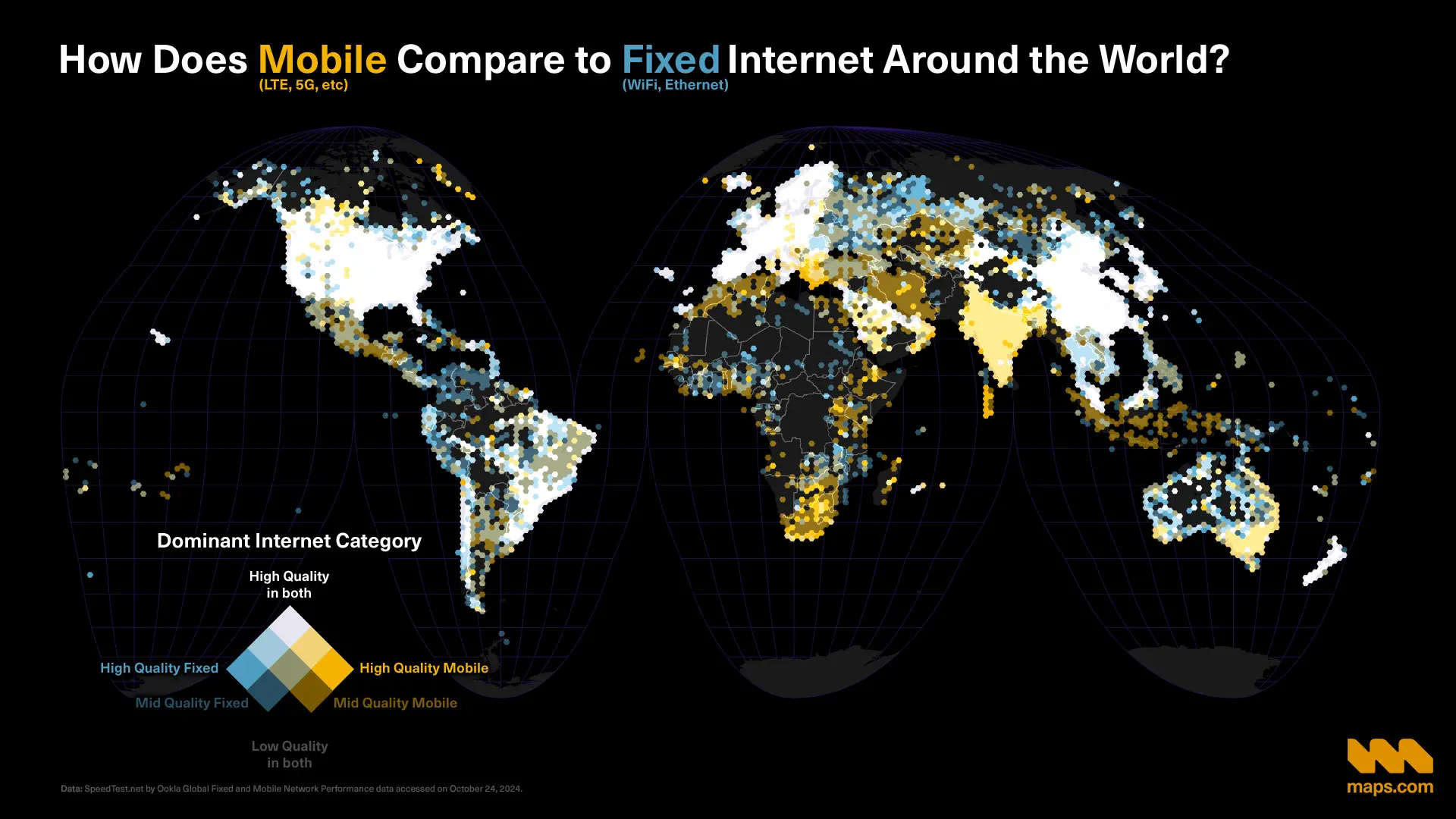 More than 65 percent of Earth’s 8.1 billion people have access to the internet. But the quality and speed of the internet available varies greatly with geography.
