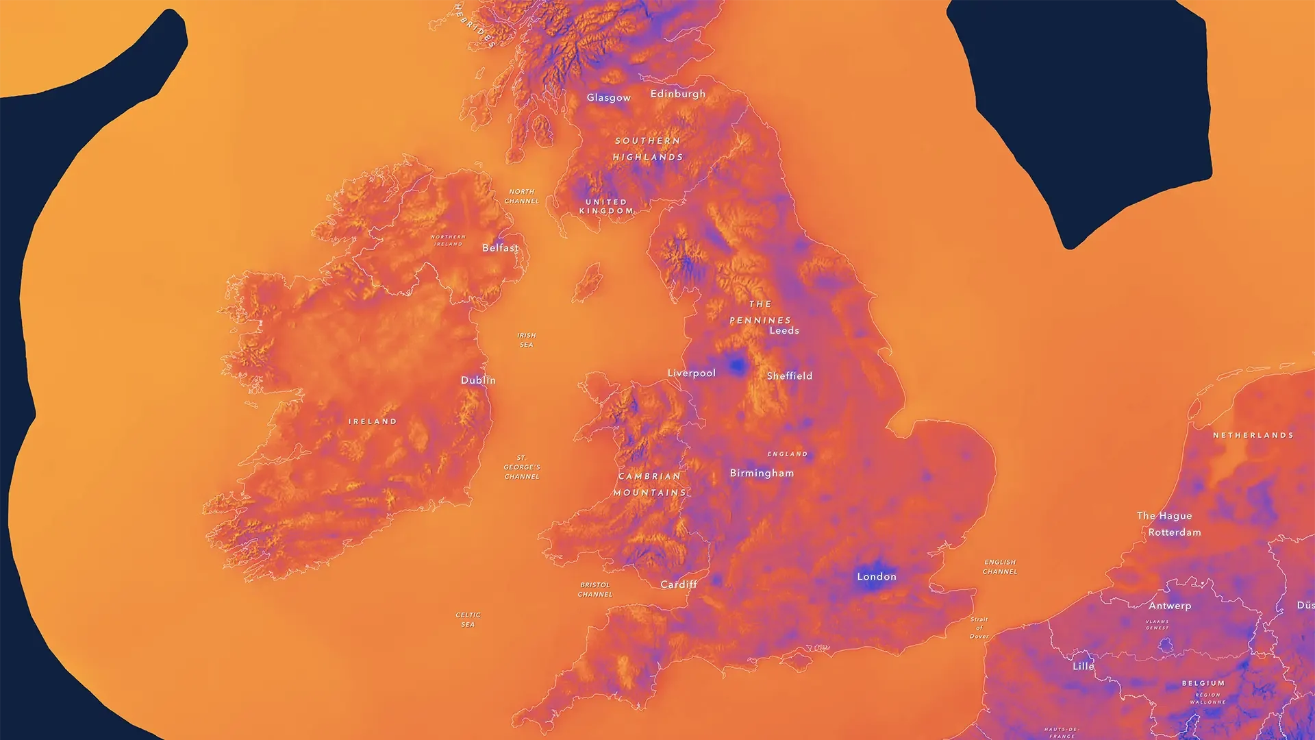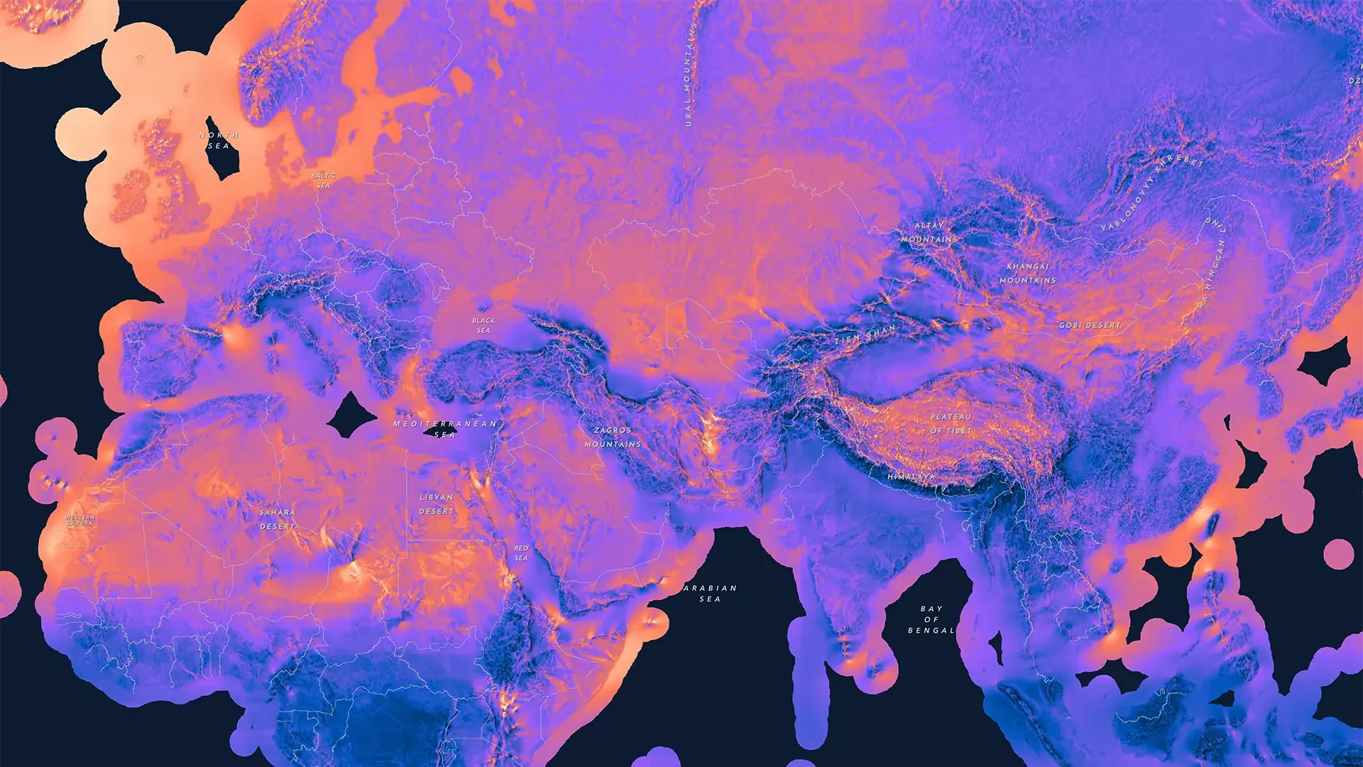 To support these needs, researchers from the Technical University of Denmark and World Bank Group have created the Global Wind Atlas. The maps below from Esri use this data to show average wind speeds and potential for energy production. All three use dark-to-light color ramps (which work well on dark basemaps) to highlight wind patterns.