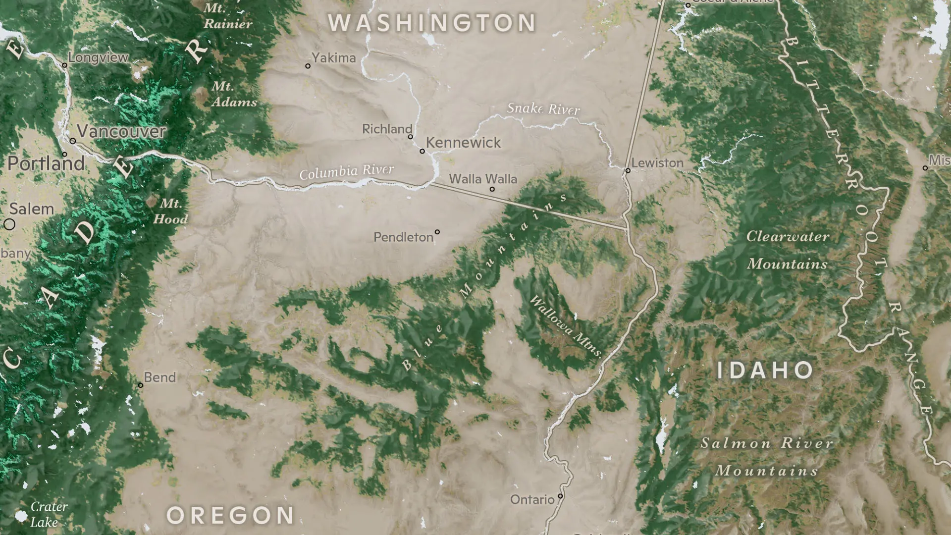 The map presents a gorgeous view reminiscent of a landcover map, with subtle hints of the topography and waterways of the country. Beyond simply showing where forests are, however, the map expertly depicts the quantity of stored carbon across the landscape. Shades of tan give way to yellows, greens, and ultimately, a bright teal to indicate the megagrams of carbon stored in every hectare. Patterns and variations are immediately obvious. Areas dense with carbon, like the Cascade Range and the Great Smoky Mountains, immediately stand out. So too do those with less carbon than their surroundings, like the Black Belt Prairie. Shintani and Fiske include several annotations that guide and inform, explaining why forests in the southeast differ in their carbon storage than those in the northeast and northwest.